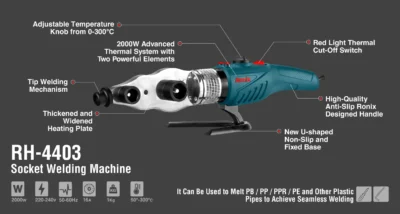 პლასტმასის მილების უთო Ronix RH-4403, 2000w, 20/32mm