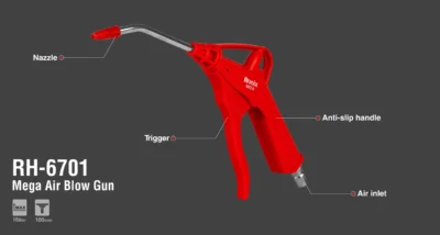 მარტივად გამოსაყენებელი პისტოლეტი, უბრალოდ შეაერთეთ ჰაერის კომპრესორთან; მოერგეთ ჰაერის კომპრესორის აქსესუარებს, რათა ძლიერად გაფანტოთ მტვერი ან წყალი და გამოიყენოთ ყველა დანიშნულებით.