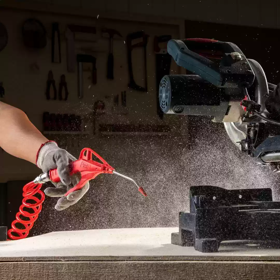 ძლიერი ხელსაწყო მაქსიმალური სამუშაო წნევით, შეუძლია ჩამჯდარი მტვრის, წყლის, ჭუჭყის და სხვა საგნების გაფანტვა მანქანაზე ან სხვა სამუშაო ადგილებში.